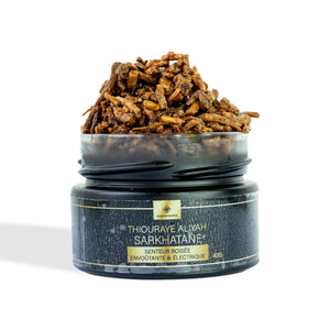 LE THIOURAYE EST UN MÉLANGE D'ENCENS TRADITIONNEL AFRICAIN FAIT À BASE D'ÉCORCE, RÉSINES, PLANTES, BOIS ODORANTS ET HUILES PARFUMÉES.